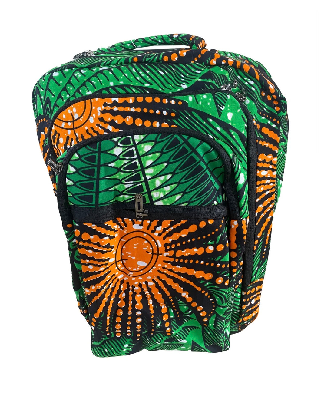 The Imani Journey Ankara Backpack is designed for purpose, protection, and everyday movement. Crafted from vibrant Ankara fabric with striking sunburst and botanical motifs, this backpack symbolizes faith, growth, and forward momentum.